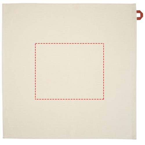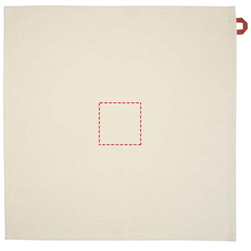 Küchentuch aus 100 % GRS-zertifizierter Recyclingbaumwolle mit einem Gewicht von 200 g/m² und einer auffälligen, kontrastfarbigen Schleife. Größe des Handtuchs: 50 x 50 cm.