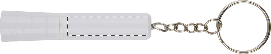 Mini-Taschenlampe aus Kunststoff mit weißem LED-Licht und Metall-Schlüsselring. Inkl. Knopfzellenbatterie.